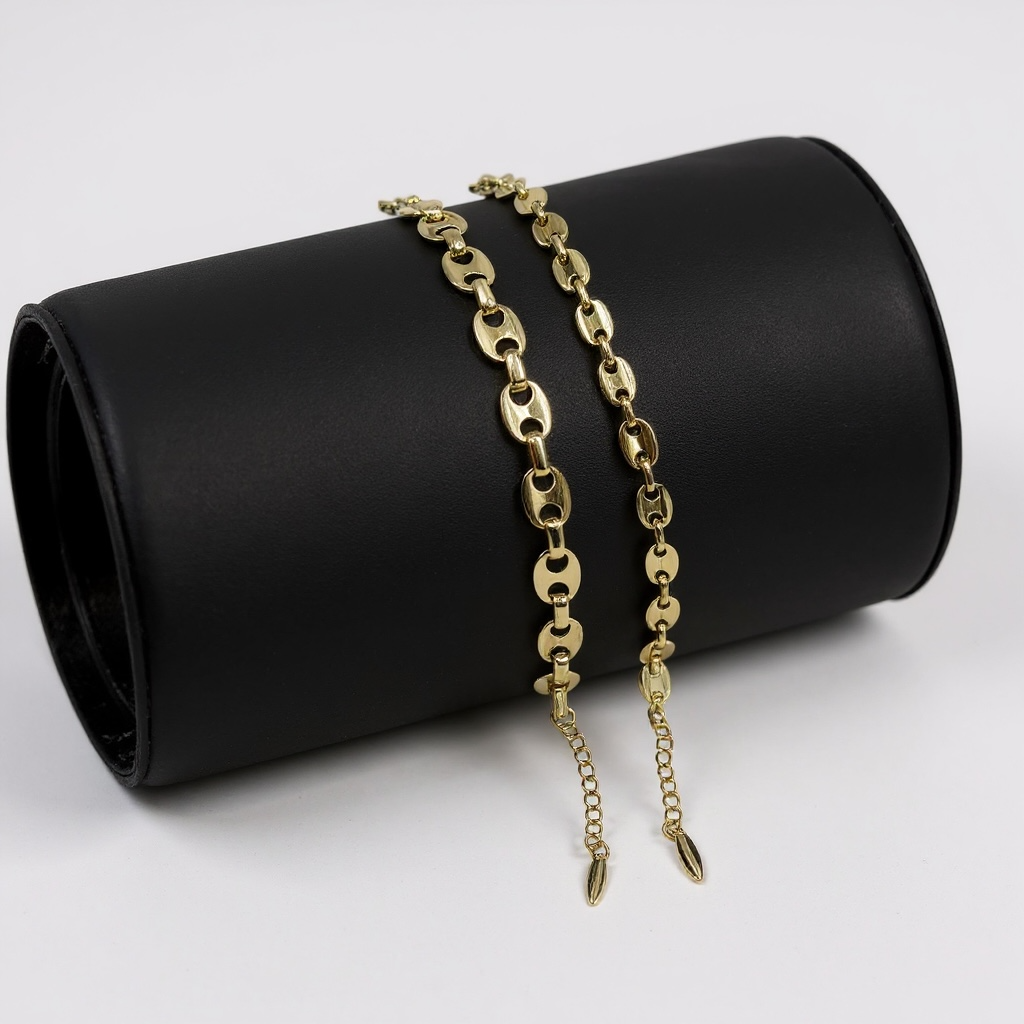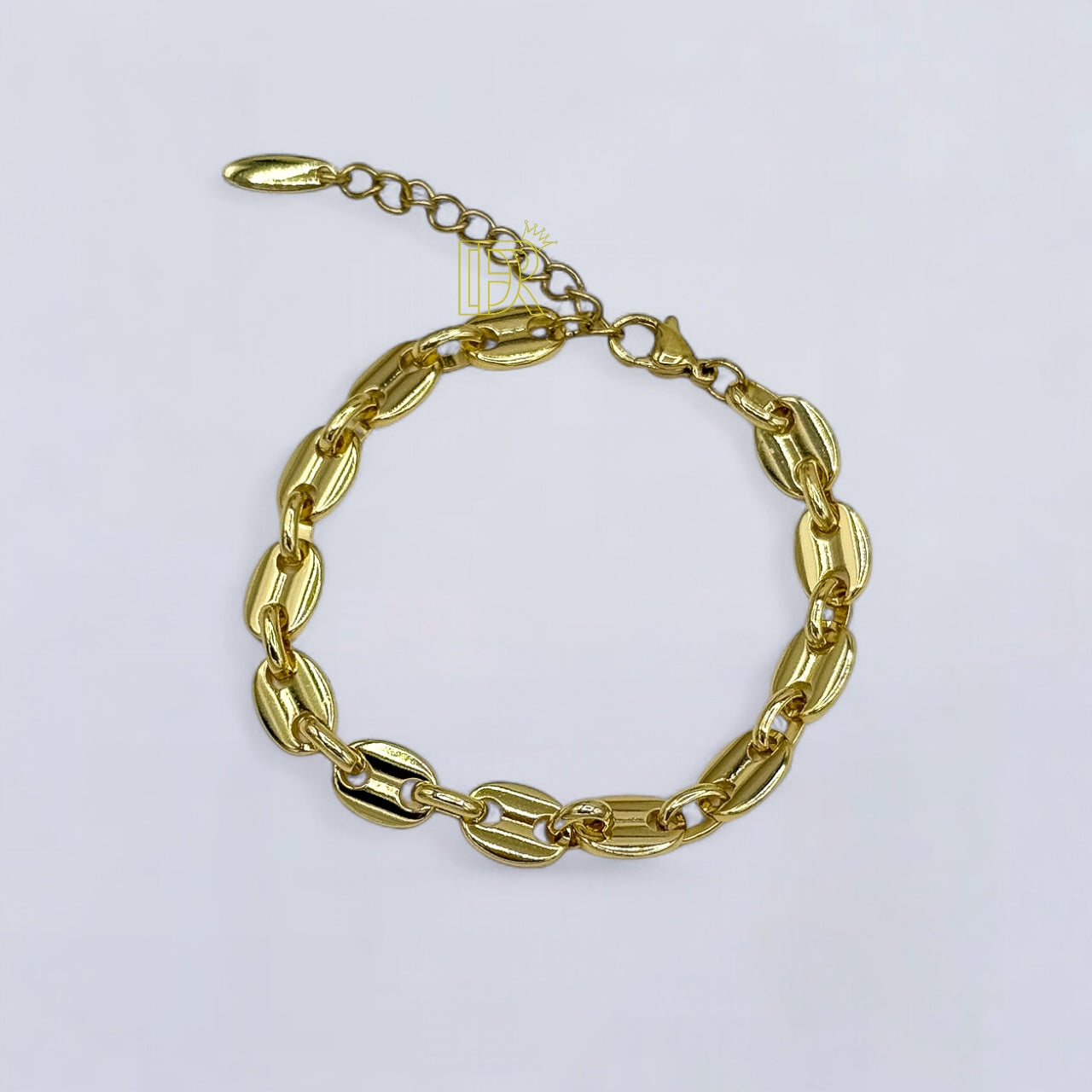 DIDIRAY MANILLA DE MUJER ESTILO GRANO DE CAFE BAÑADO EN ORO DE 14 QUILATES CON LACA PROTECTORA DE PRIMERA CALIDAD,PARA USO DIARIO