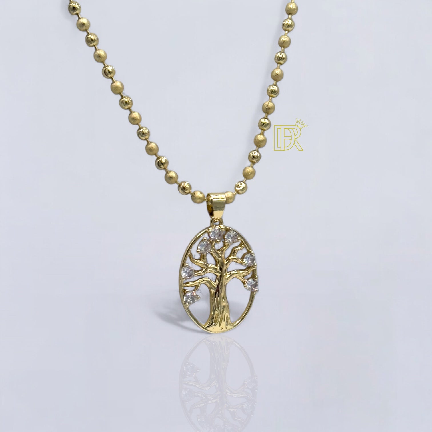 Cadena unisex bañada en oro de 14k con colgante de árbol de la vida reforzado con un acabado premium y brillo duradero.
